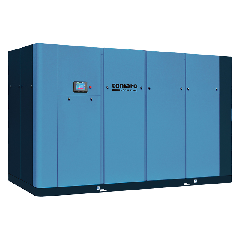Ещё одной инновационной разработкой COMARO стали винтовые компрессоры серии MD-2ST с двухступенчатой винтовой парой, которые при той же мощности, что и соответствующие компрессоры серии MD, более эффективны и способны производить на 15-20% больше сжатого воздуха.